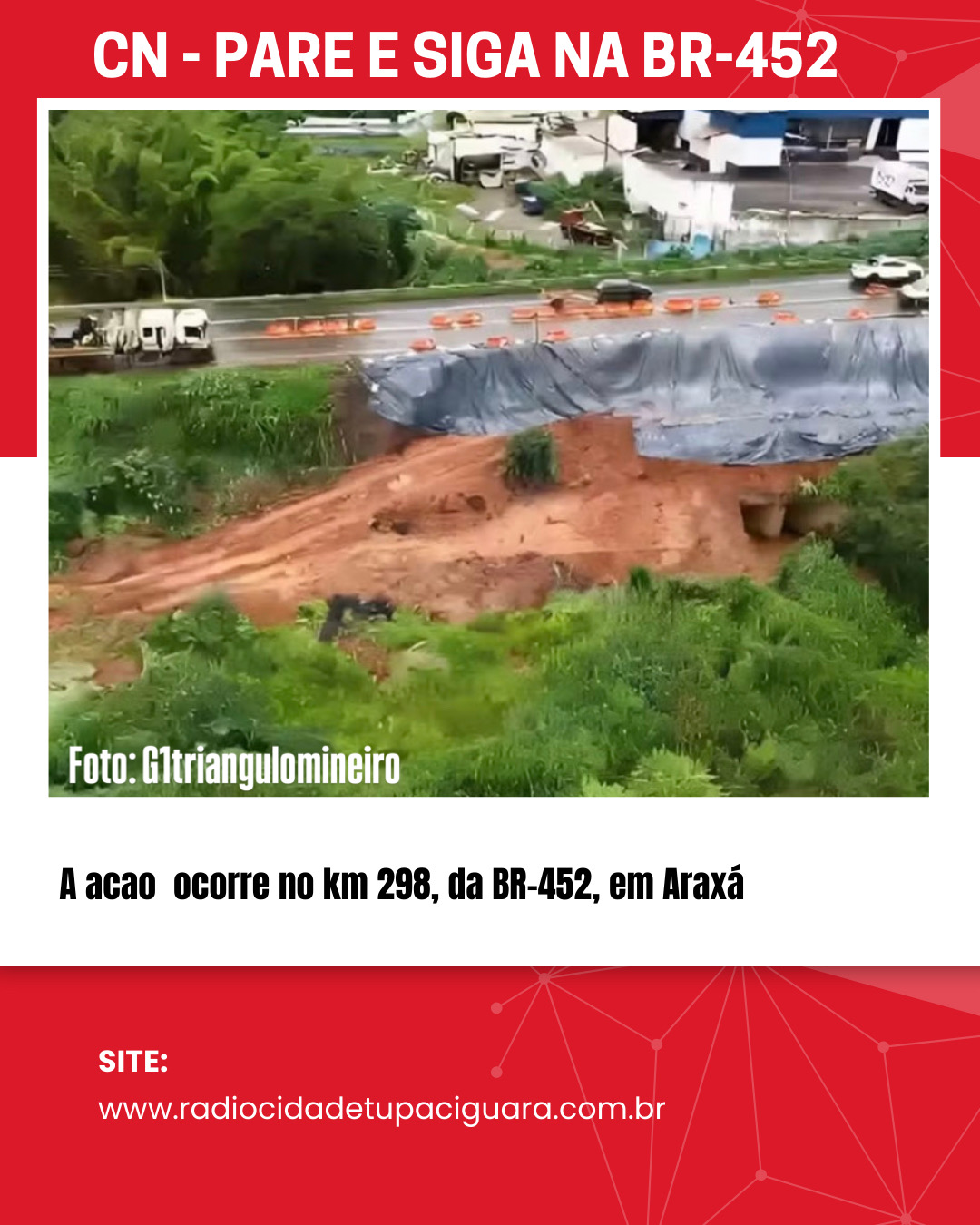 A EPR Triângulo implantou sistema “pare e siga” no km 298 da BR-452, em Araxá, para garantir a segurança durante trabalhos em um talude.