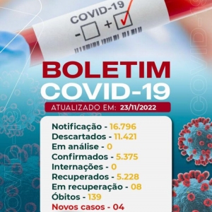 6 - A Secretaria Municipal de Saúde divulga BOLETIM COVID-19 nesta quarta-feira (23), onde constam 04 novos casos em Tupaciguara/MG.