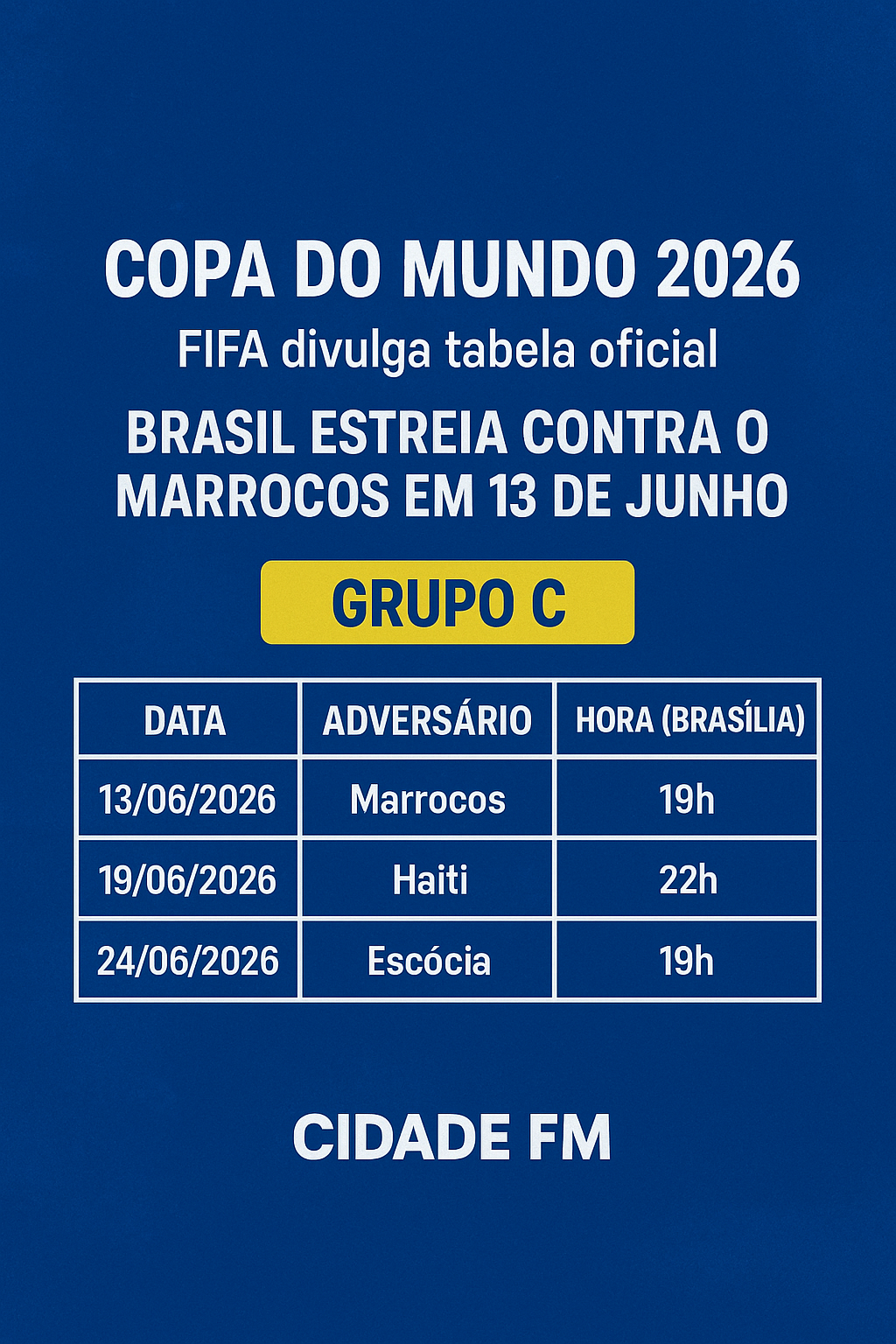 FIFA divulga tabela oficial — Brasil estreia contra o Marrocos em 13 de junho